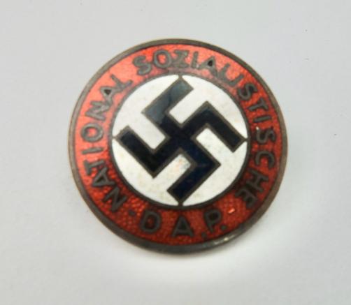 NSDAP Party Badge Nice used NSDAP Party Badge “RZM” marked and marked “Ges. Gesch.” (Government protected) in used but good condition.