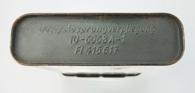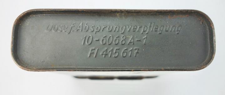 “Fl 415617” used by Luftwaffe fighter pilots and bomber crews in case of emergency this metal container would hold survival food.