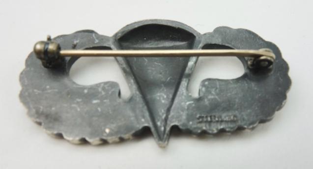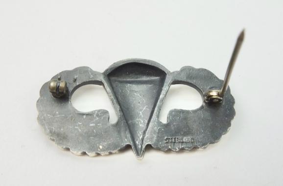 US WW2 Stirling Paratrooper Jump Wing Very nice standard model late US WW2 paratrooper jump wing. "Stirling Silver" marked. With “Oval” Nice textbook paratrooper jump wing in good condition.