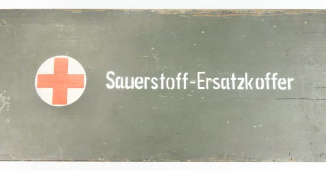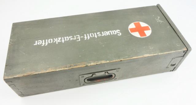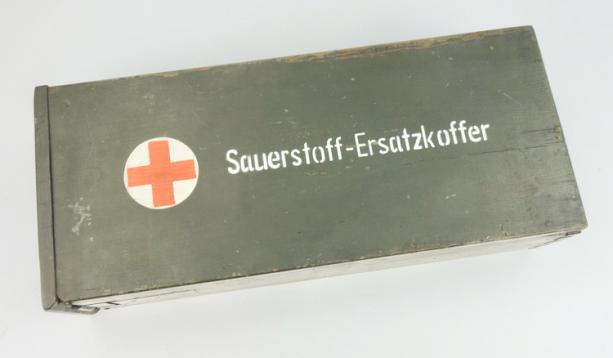 Wehrmacht Medical Oxygen case Very nice Wehrmacht "Sanitäter" medical wooden case in 99% original paint. For two reserve metal "oxygen" bottles. In extreem good condition.