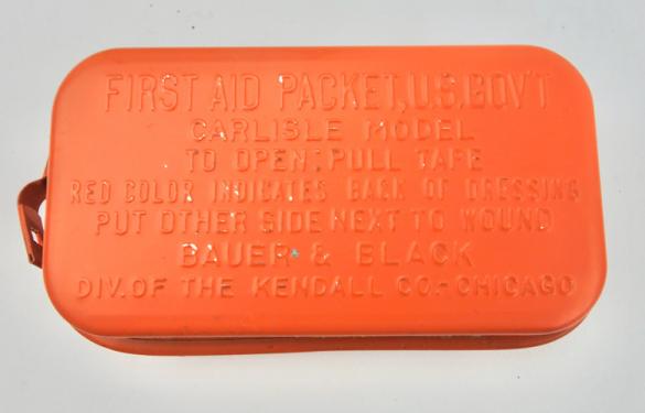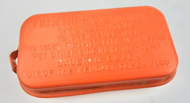 Metal can with wound bandage but without “Sulfamilamide” to stop bleeding.