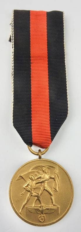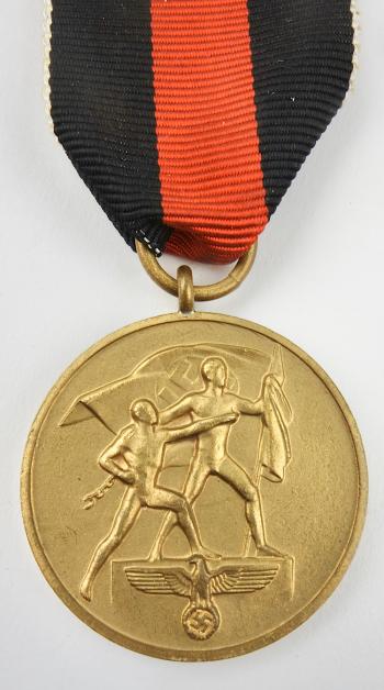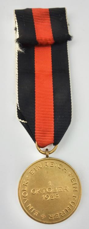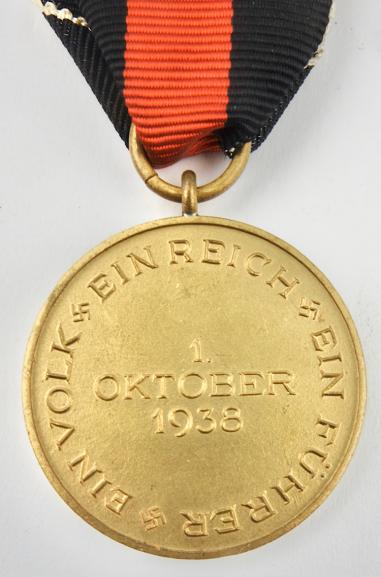 The Commemorative Medal of 1 October 1938 was the second of the "Anschluss" (Annexation), medal series and was introduced on 18 October 1938, for award to civilians and military personnel who participated in the "return" of the Sudetenland to Germany" with its original ribbon and in very good condition.