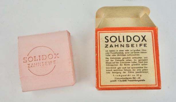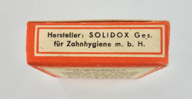 German Tooth Paste in original carton box "Solidox" Nice carton box with original content "Solidox, Zahnzeife"