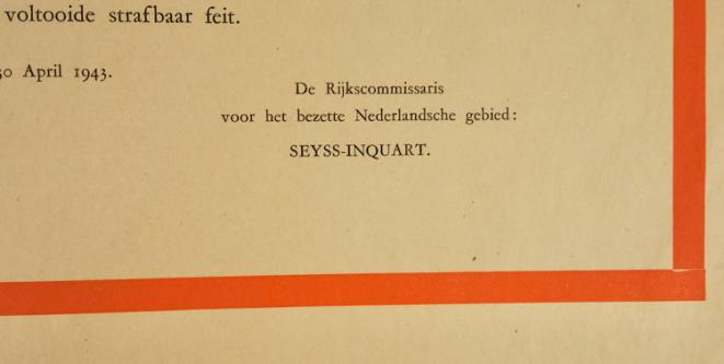 Signed by the “Der Reichskommissar für die besetzten niederländische Gebiete, Seyss-Inquart”