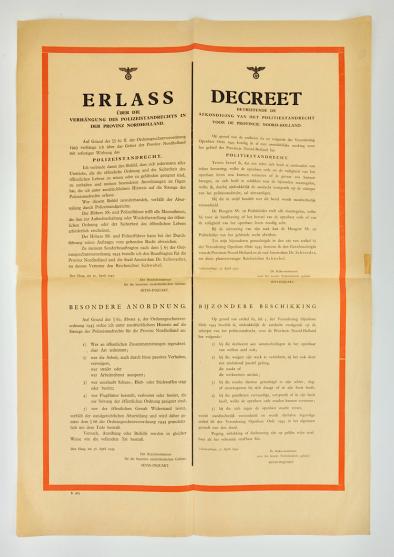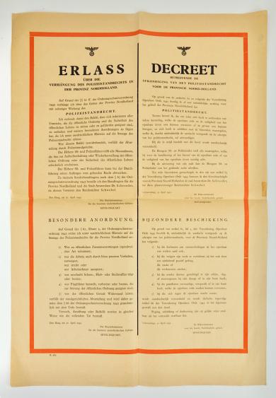 Decorative public Wehrmacht announcement poster in German and Dutch language