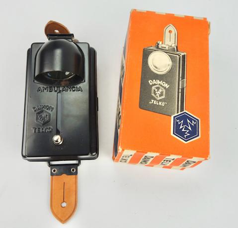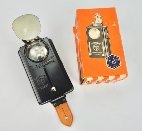 Fantastic un-issued, mint Wehrmacht "Daimon Telko" flashlight type "Ambulancia" in its original carton box! One of the most wanted Wehrmacht flashlights. Imposible to upgrade!