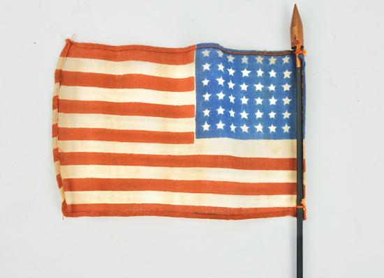 US WW2 48 star Little Flag on pole Very nice made little US WW2 48 star flag on a pole In very good condition.