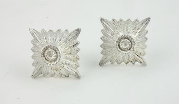 Wehrmacht metal Rank Insignia Very nice metal Wehrmacht rank pips. Maker marked inside. In very good condition.
