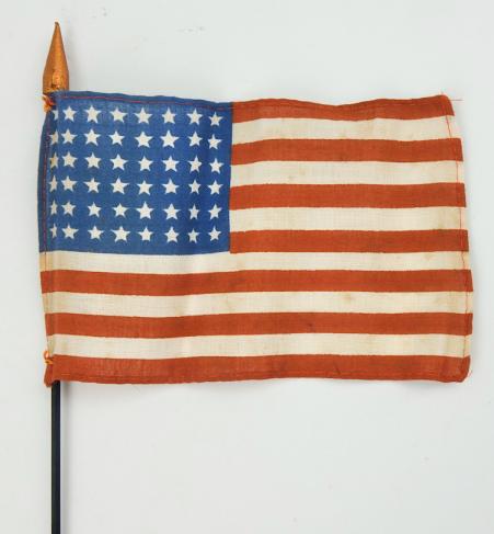 US WW2 48 star Little Flag on pole Very nice made little US WW2 48 star flag on a pole In very good condition.
