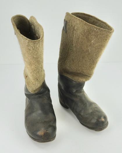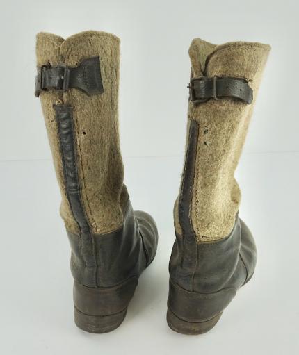 Wehrmacht Felt/Leather Winter Boots Nice used Wehrmacht Felt/Leather winter boots With original sole. In used but good condition and in a good mannequin size!