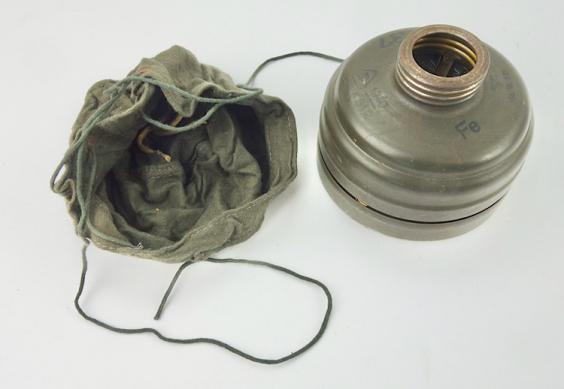 Used over the M31 gasmask filter when carrying in the cannister. In very good condition.