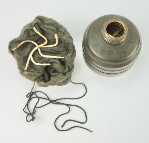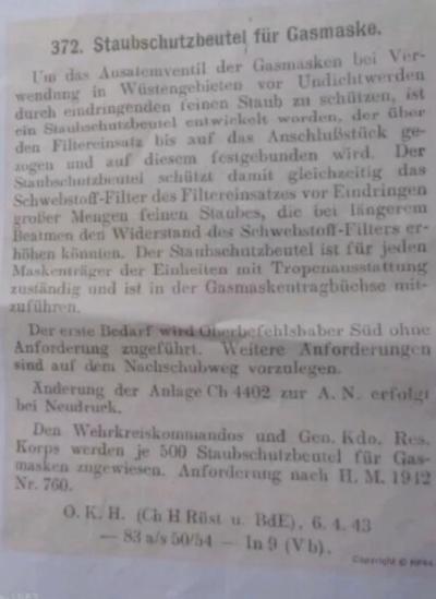 Made in order of the High Command of the Wehrmacht. Wehrmacht M31 gasmask filter dust cover, which must be used by all Wehrmacht troops stationed and fighting in tropical and dessert territory