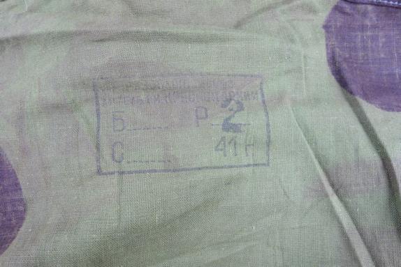 Used by Soviet scouts, snipers and combat engineers dated “1940 the smock and 1941 the trousers” the smock hood still complete with face veil.