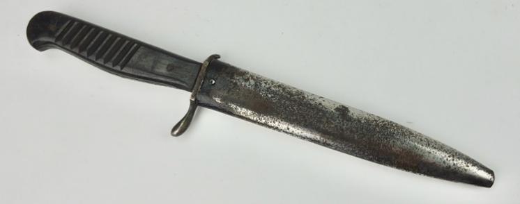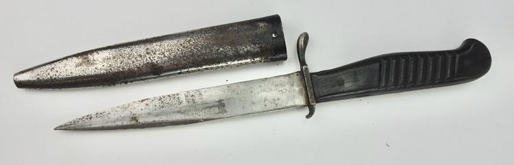 German WW1 Close Combat Knife Used but nice German WW1 close combat knife Maker marked "Nippel" on the blade. In its original scabbard. In used but good condition.