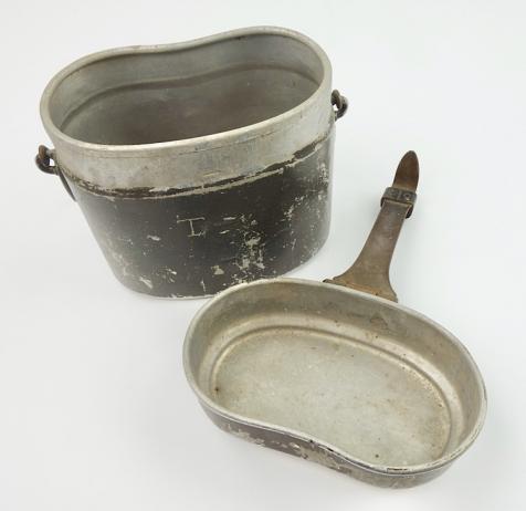 Wehrmacht M31 Mestin Nice used Wehrmacht M31 aluminium made mestin. Maker code marked "WAL" and dated "1941" In 855 of its original field grey camo paint. In used but good condition.