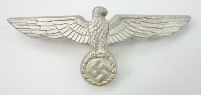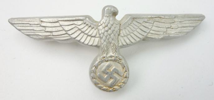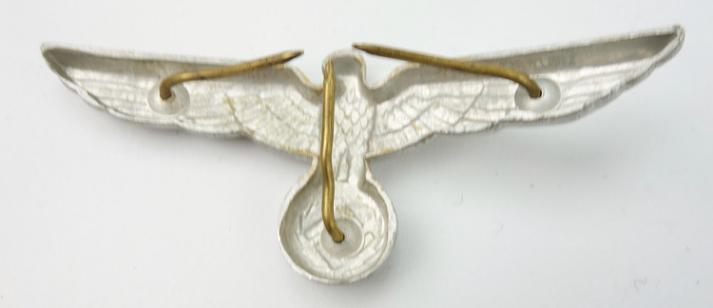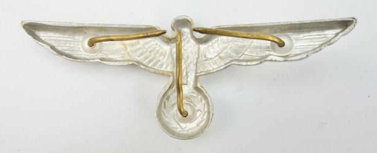 Wehrmacht metal Visor Cap Eagle Very nice Wehrmacht light weight (Aluminium) NCO/Officers visor cap eagle In used but very good condition. Perfect spare part to complete a visor cap!