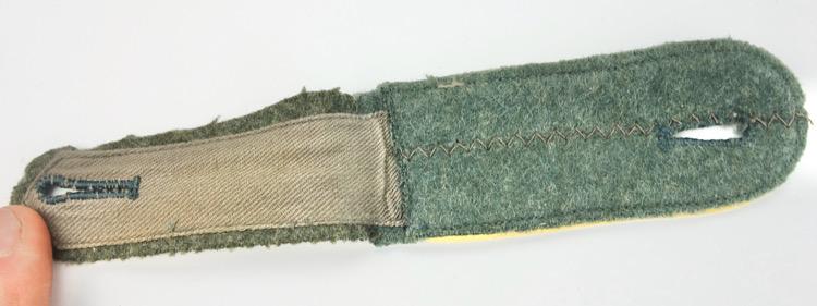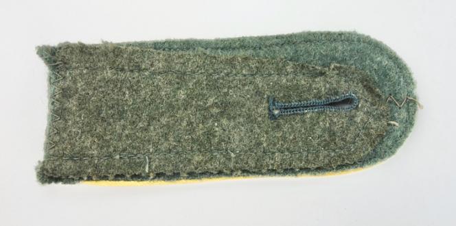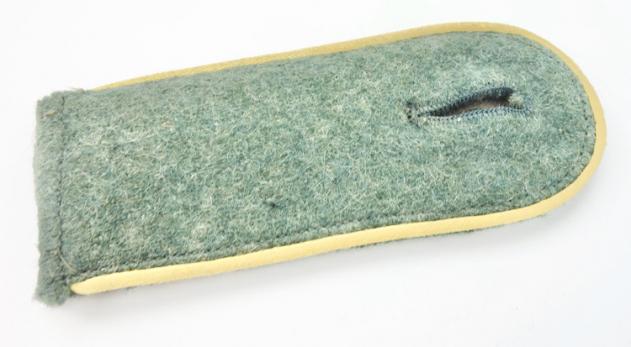 Single Wehrmacht Nachrichten Shoulder Board Nice used single Wehrmacht M40 style Nachrichten (Signals) shoulder board. Nice field grey wool with yellow silk piping. In used but good condition.