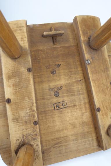With Wehrmacht eagle burn marking. Also burn marked “H.U.” which is “Heeres Unterkunft” very nice for display or for a sitting mannequin in your collection.