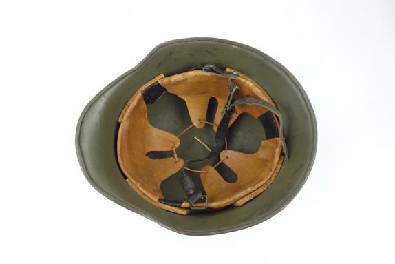 Fantastic rare lightweight steel helmet in 98% of its original early olive green camo paint, liner and helmet strap (unfortunately the strap hook is loose but can be fixed) overal a very nice helmet in very good condition. Rare to find!!!