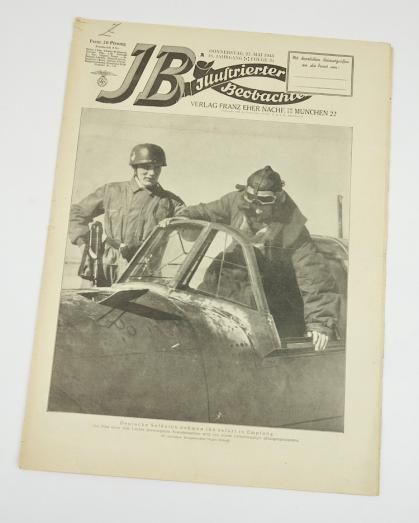 JB Juustrierter Beobachter Very nice decorative Third Reich magazine With on the cover “Luftwaffe Glider with a Pilot and Fallschirmjäger” Dated May 27 "1943" In very good condition.