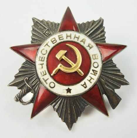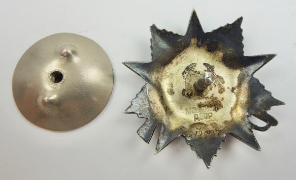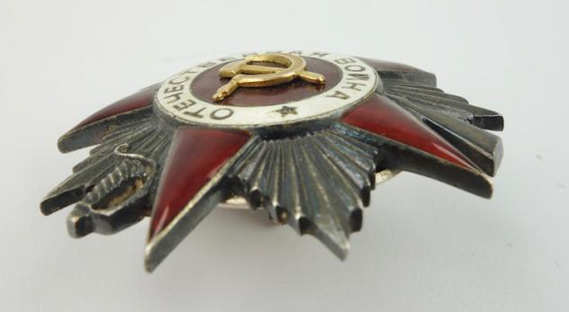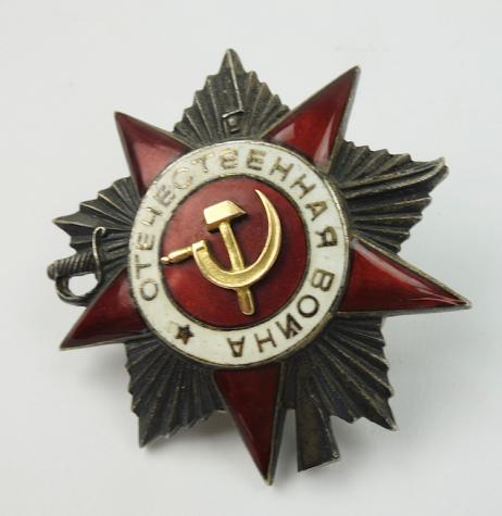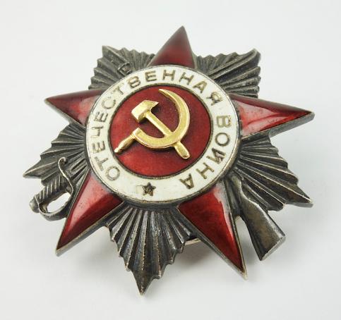 Soviet order for the Great Patriotic War Very nice early WW2 numbered order with the loose real golden hammer & sickle with srew back In very good condition.