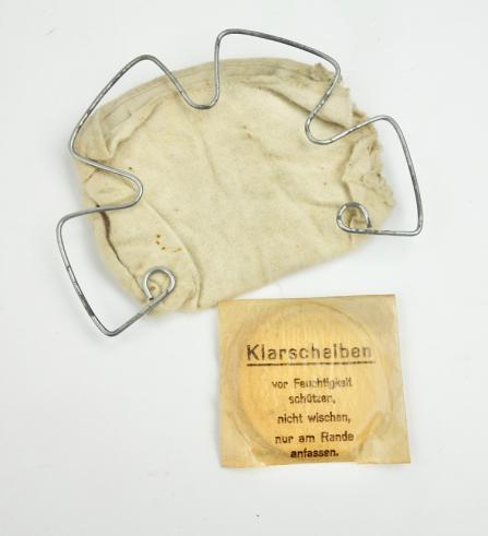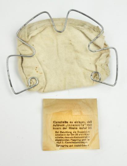Wehrmacht M31 Gasmask Cleaning Cloth and Spring Nice used cleaning cloth and spring for the M31 gasmask and “Klarscheiben” Nice set to complete your M31 gasmask In good condition.