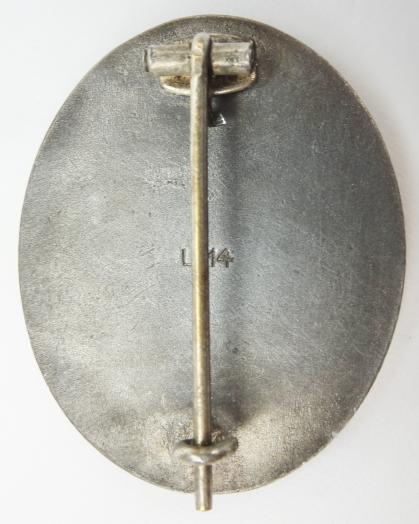 Wehrmacht Wound Badge Silver Very nice used mid war Wehrmacht wound badge silver. Maker code marked “L14” which is “Friedrich Orth, Wien” Overal a very nice used wound badge in very good condition.
