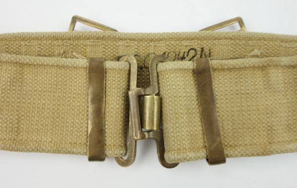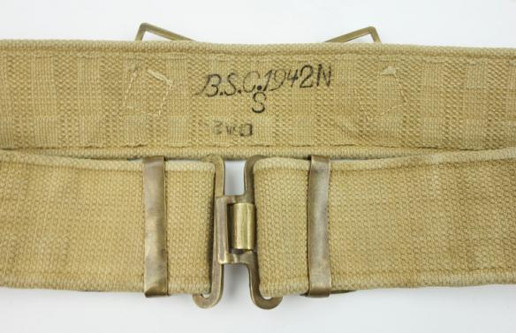 British Combat Belt Nice used British webbing combat belt Dated “1942” maker marked “B.S.C.” In used but good condition