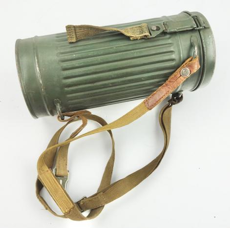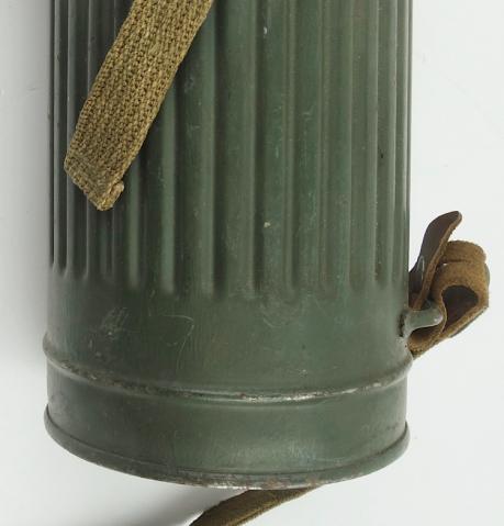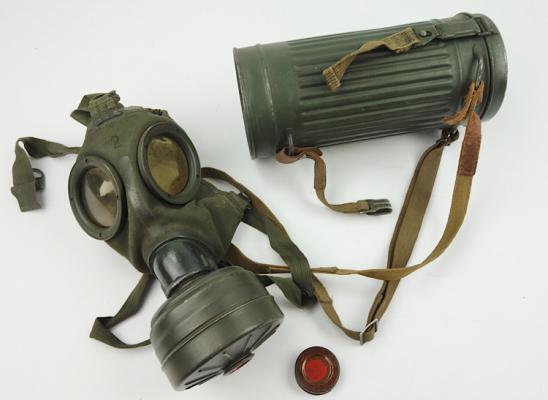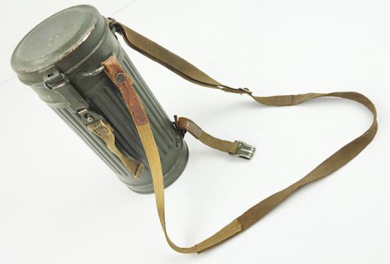 Very nice used Wehrmacht M31 gasmask and cannister. (Strap has a repair)