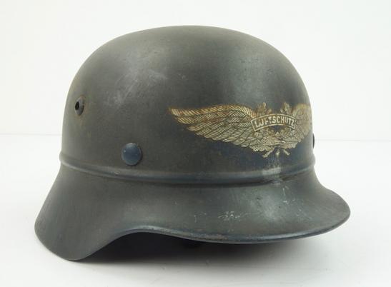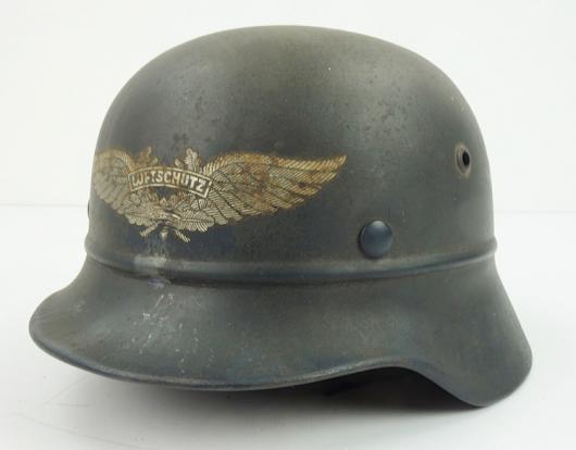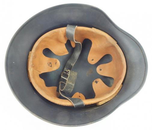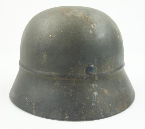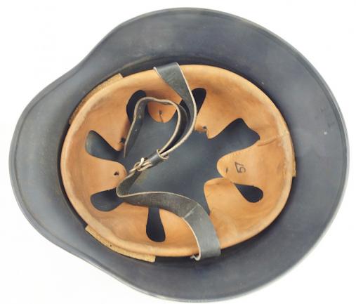 In 98% of its original paint and compleet with its original liner in size “57” after the war they scratched the swastike, but overall the decal is 95%
