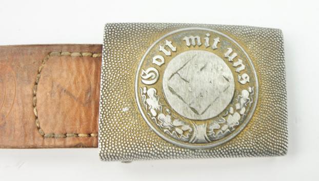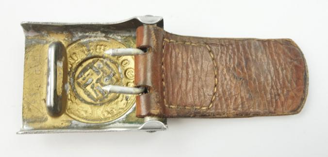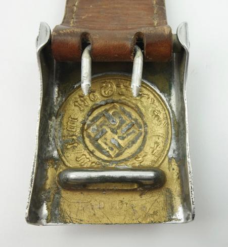 Early aluminum de-nazified “Wasserschutz” (water Police) belt buckle with leather tab.