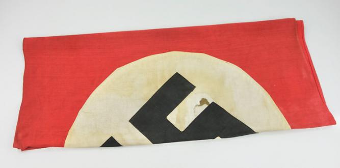 Very nice Third Reich flag "Haus Fahne" in used but good condition! Swastika on both side's