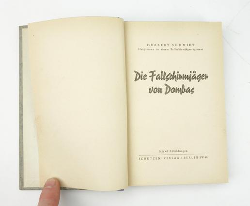 German Wartime Book Fallschirmjäger von Dombas Very nice German Wartime Book Fallschirmjäger von Dombas, written by “Herbert Schmidt” With personal notice! Nice book in very good condition.