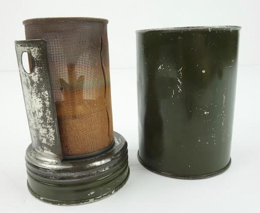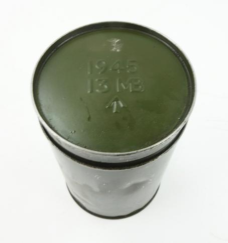 British WW2 Tent Heater Very nice late WW2 British tent heater “1945” dated and “Broad Arrow” marked In its original camo paint and in good working condition.