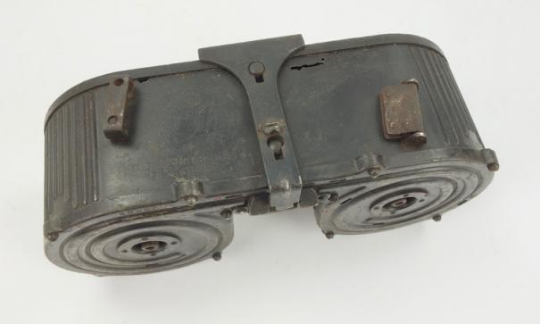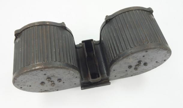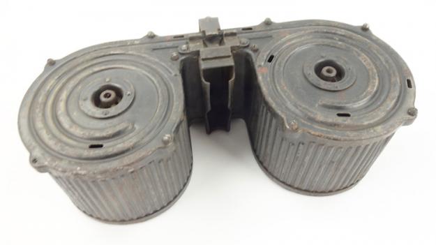 Designed for the Luftwaffe aircraft MG15 machinegun, but used with a special adapter on the MG34 aswell. Nice used drum “Flieger number marked” missing the leather carrying strap. Overal in good condition.