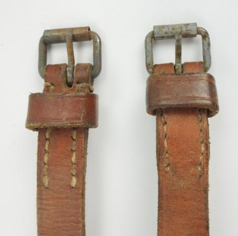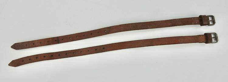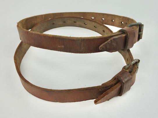 2 Luftwaffe Brown Equipment Straps Used but very nice light brown leather Luftwaffe equipment straps with steel buckles. In very good condition.