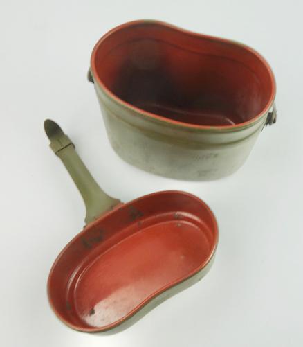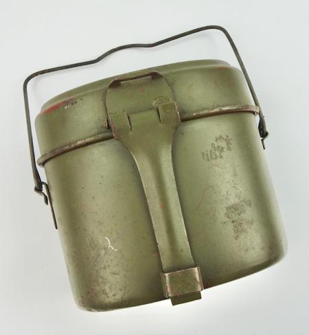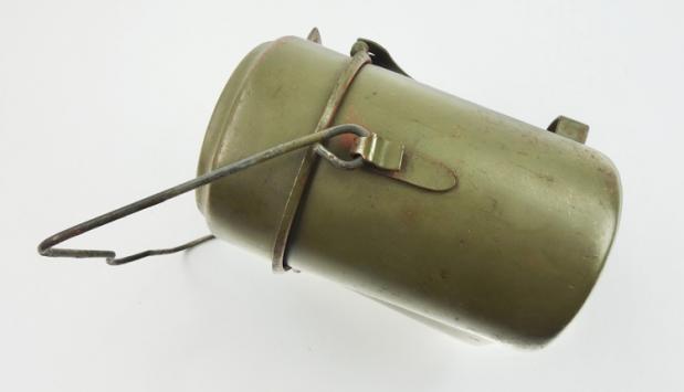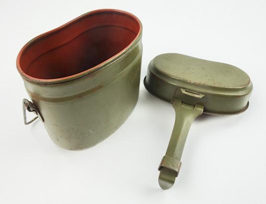 Wehrmacht steel M31 Mestin Mid war Wehrmacht steel M31 mestin In 98% of its original field-grey camo paint And red paint inside. Maker marked but hard to see because of the camo paint. Hard to upgrade!