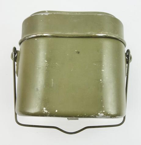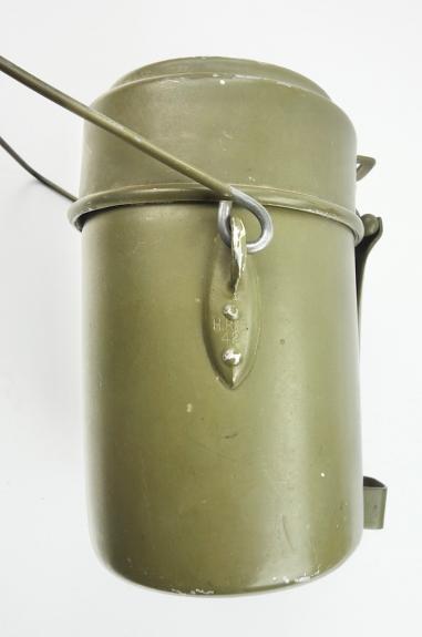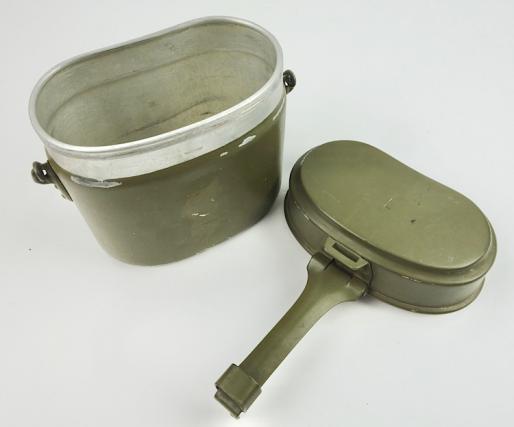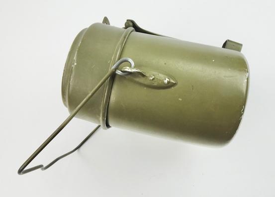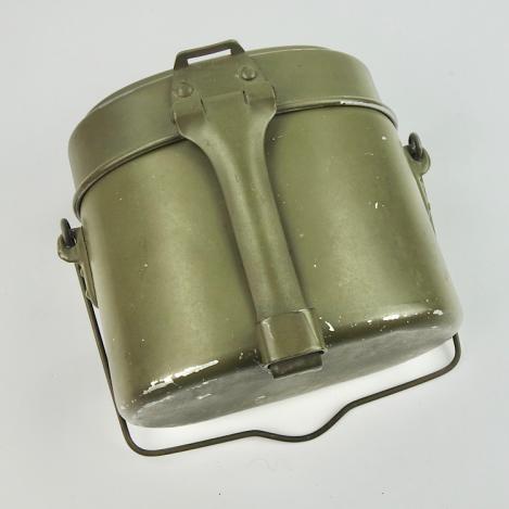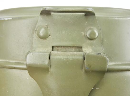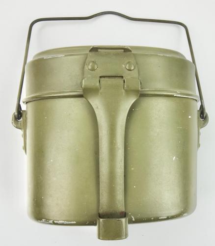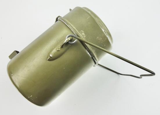 Wehrmacht M31 Mestin Nice aluminum made Wehrmacht M31 mestin Maker marked “HRE” and dated “1942” In 98% of it’s original field-grey camo paint. Fully matching on both parts. Hard to upgrade!