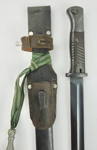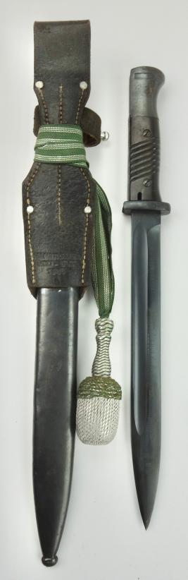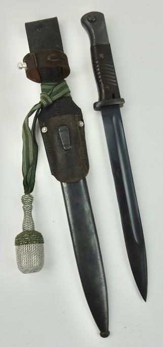 The early type leather frog is is maker marked and dated “1940” overal a K98 Bajonet in a fantastic condition complete with a nice NCO porte pé