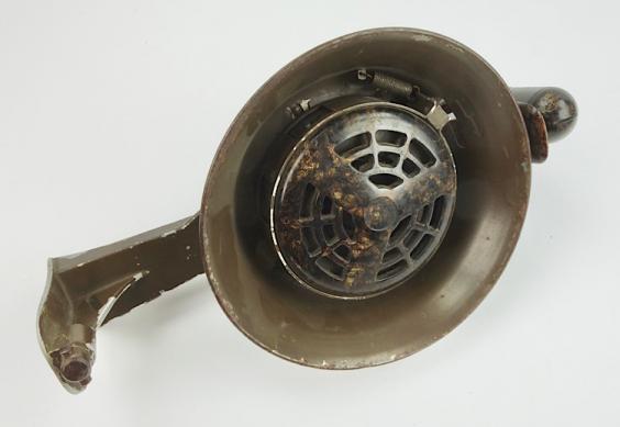 Metal and bakelite sirena. Maker marked and in 98% of it’s original field-grey camo paint.