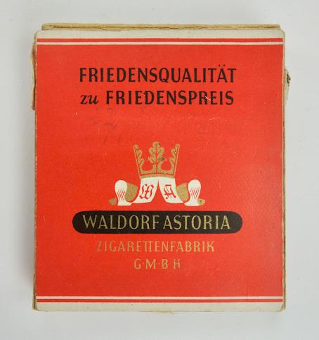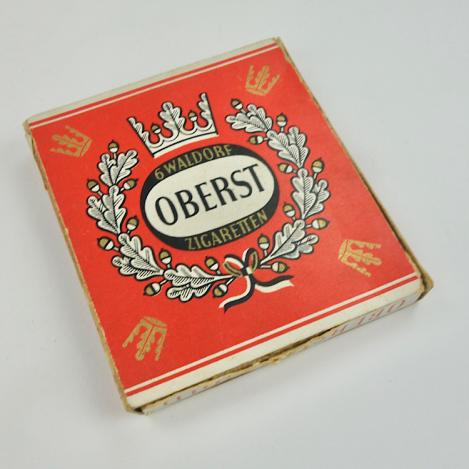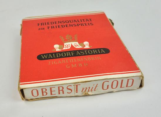 Third Reich era Cigarettes “Walldorf Oberst” cigarettes. Packaging with content. Made by the “Walldorf-Astoria, Zigarettenfabrik G.M.B.H.” In good condition.