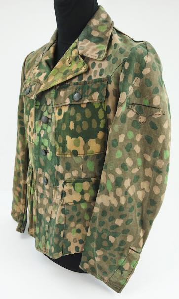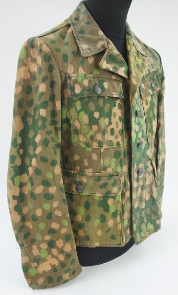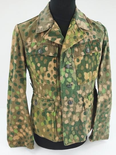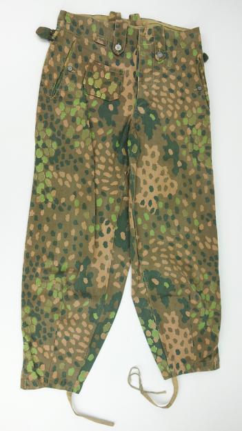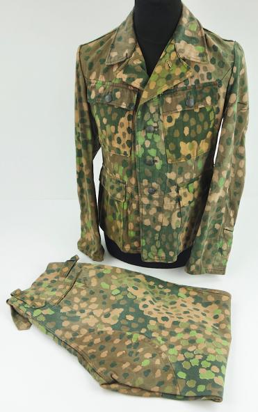 Wonderful cotton version of the WaffenSS M44 camo tunic and trousers which are not often for sale in this wonderful matching bright color condition.