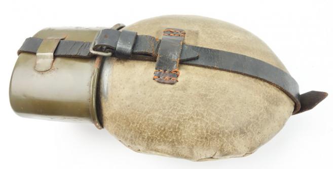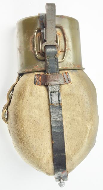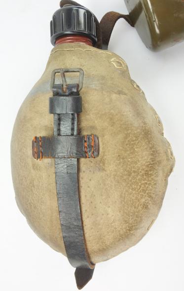 Extreem rare Wehrmacht M31 canteen with custom made cover from “Pigs Skin”