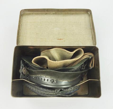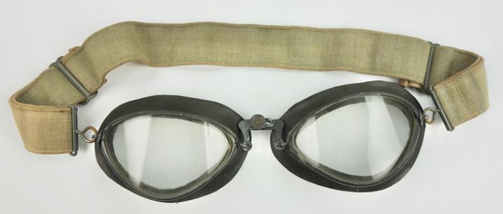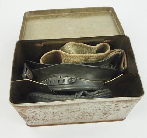 Wehrmacht Motorcycle Dust Goggles Nice Wehrmacht Motorcycle Dust Goggles in nice metal case. Goggles maker marked “GV” and dated “1944” in used but very good condition.
