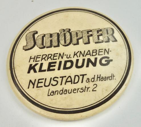 These mirrors where giving free whith an advertisement “Schöpfer, Herren u. Knaben, Kleidung” overal a nice wartime pocket shaving mirror in very good condition.