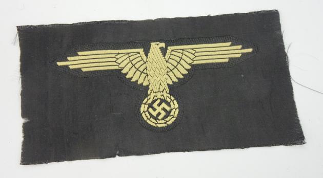 WaffenSS Tropical sleeve Eagle Un-issued WaffenSS tropical sleeve eagle “Bevo, Wuppertal” made. Used on WaffenSS “Sahariana” tunics and also on WaffenSS M44 dot camo tunics. In very good condition.
