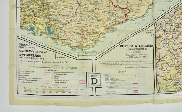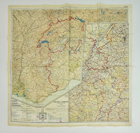 Used but very nice silk escape map C/D "Holland, Belgium, France, Germany and Swiss"