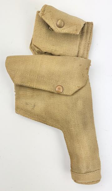 Nice used British WW2 Revolver Holster and Ammo Pouch. Holster for a Cal. 38 Webley of Enfield Revolver maker marked and dated “1942”