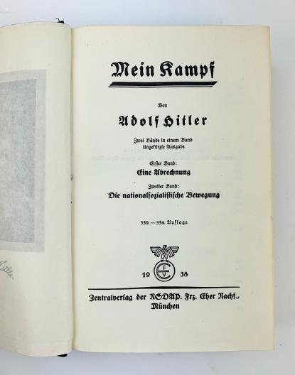 Mein Kampf 1938 Near mint “Adolf Hitlers” Mein Kampf, dated “1938” For historical purposes only. In very good condition.
