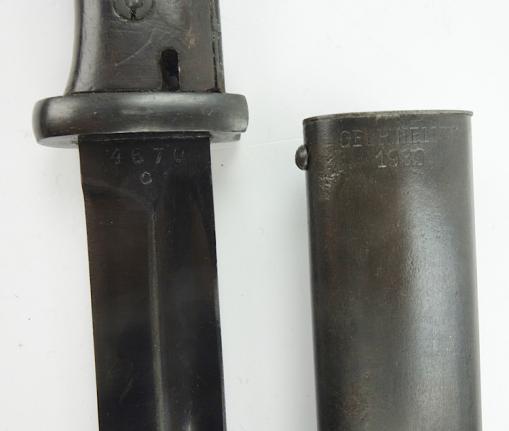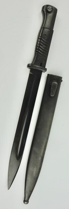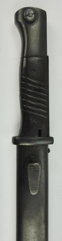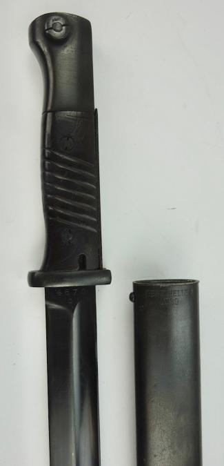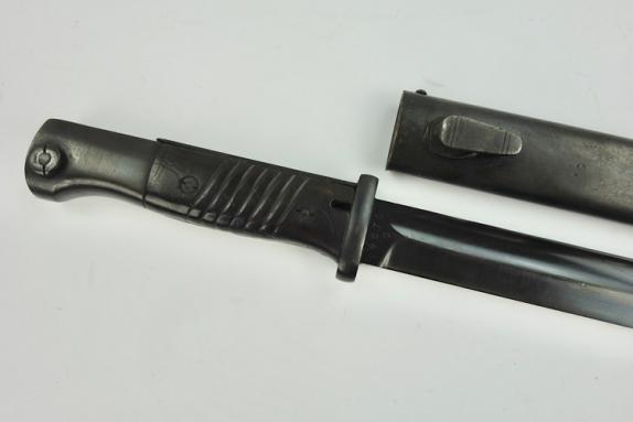 K98 Bajonet Near mint non matching K98 Bajonet. Maker code marked “F.N.J.” and dated “1942” With very nice “bakelite” grips. Overal a fantastic K98 bajonet in very good condition.